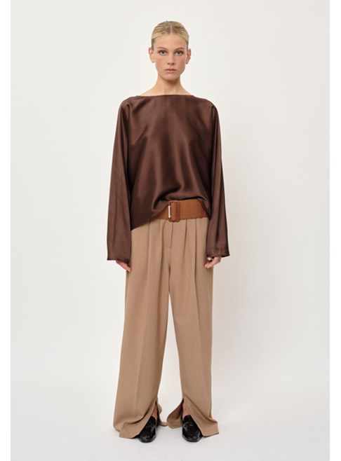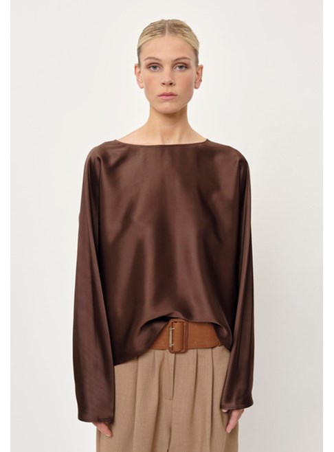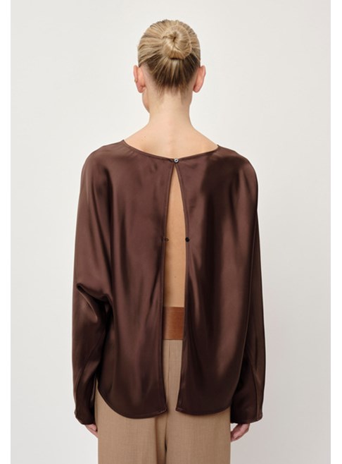 Introducing the Candy Blouse by Birgitte Herskind: A loose-fitting blouse with long, relaxed sleeves. The blouse features an open back with a two-button closure, allowing you to adjust the degree of openness.