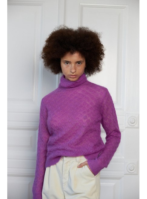 Light mohair sweater from Stella Nova with a roll neck. Long sleeves and a loose fit, made to be both comfortable and warm. The knitted structure is slightly transparent.