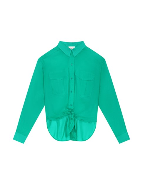 Green cotton voile shirt with long sleeves from Isabel Marant Etoile. Chest pockets, front button fastening and knot at the waist.
