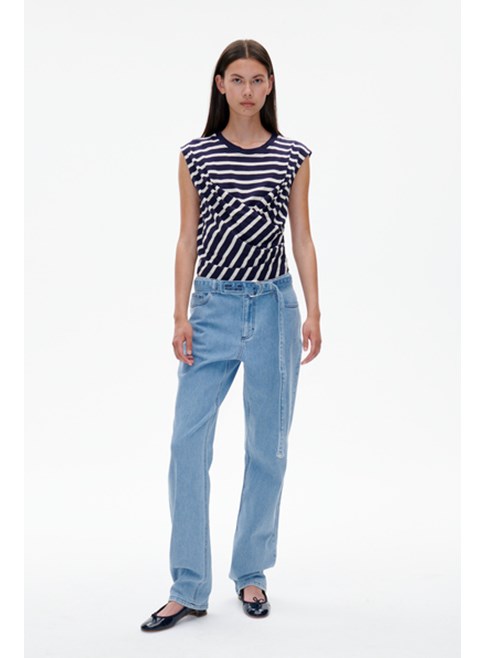 This cropped, sleeveless Baum und Pferdgarten top features a knot in the front for a flattering drape. Wear it with your favorite denim trousers.