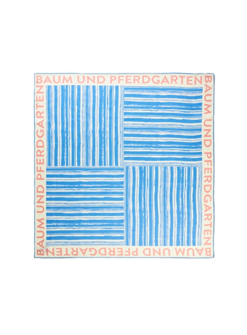 This square Baum und Pferdgarten silk scarf features a logo around the edge. Wear it as a scarf or during summer as a top.