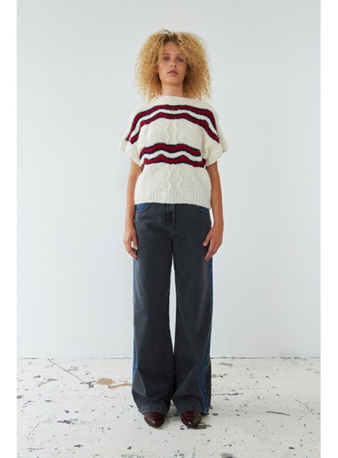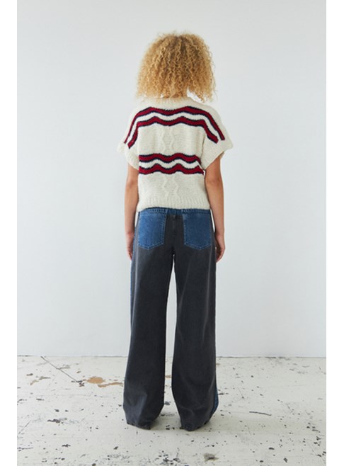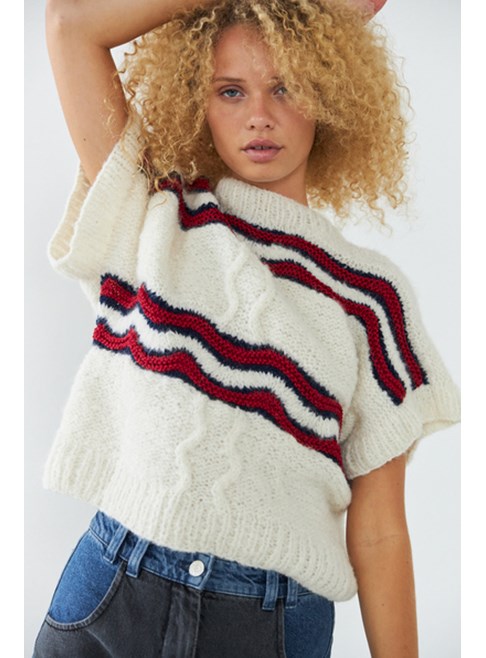 Handcrafted vest made with alpaca wool from Peru. Jacquard knitted and with "waves of color" across the chest and waist. This Stella Nova vest has batwing sleeves and a round neck. By purchasing this garment, you support the art and labour of female artisans of the Andes of Peru.