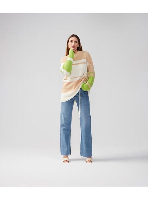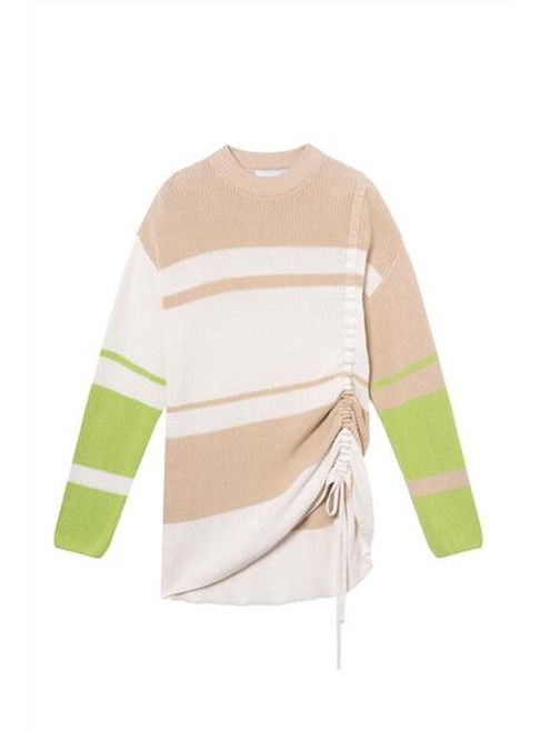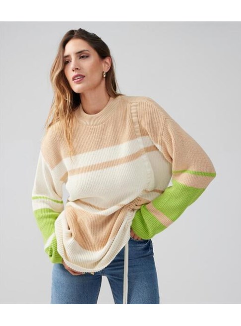 This not-so-classical crewneck sweater has sculpting drawstrings for an optional effect. It's up to you to wear it with or without the ruched effect.