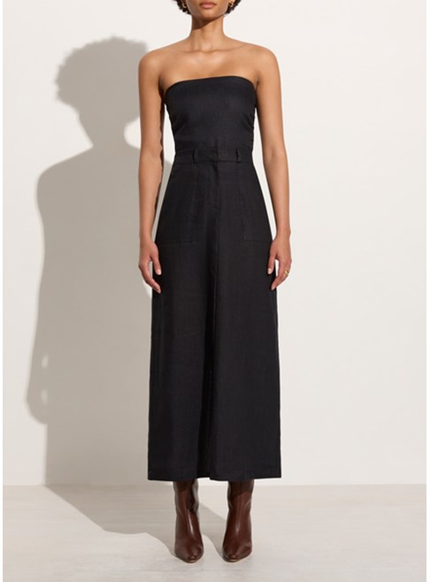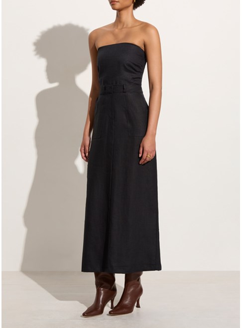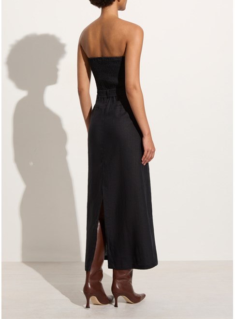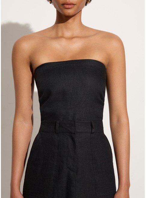 Discover a wardrobe essential in the Praiyah Bodice from Faithfull the brand in Black. Designed for easy-wear, the Praiyah boasts a strapless neckline, gathered sides and a shirred back for extra comfort. Considerately cut from responsibly sourced linen and hand-dyed in staple black, the Praiyah is an elevated staple that easily styles with black linen trousers and strap heels.