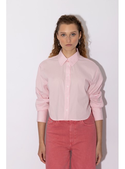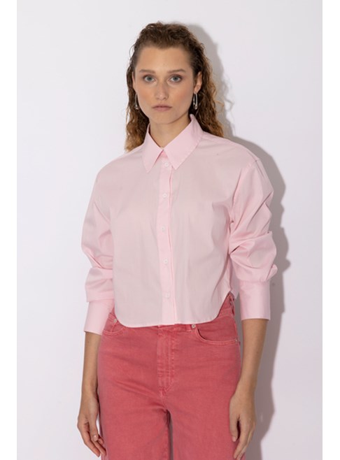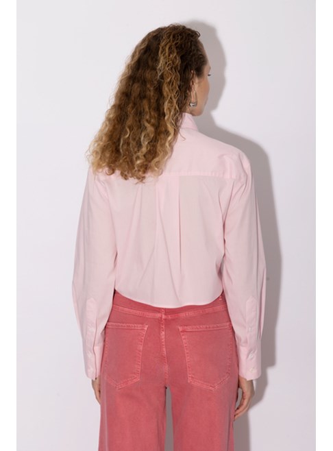A cropped poplin, mixed cotton shirt from Collectors club with a deep center back pleat, wide cuffs and a well-studied collar. Made by our Portuguese friends. We suggest you wear it on high waisted piece, skirt or trousers, up to you.