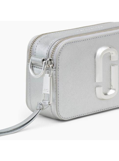 Now our forever icon. This version of our Snapshot from Marc Jacobs is crafted in striking silver leather. Our signature J Marc hardware, a double zip compartment, and a removable and adjustable webbing strap make this crossbody bag big enough to hold what you need and small enough to carry anywhere.?