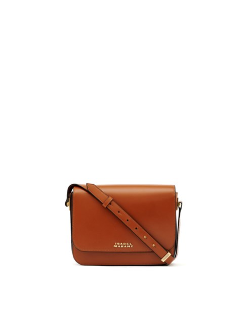 Cognac leather Nizza shoulder bag with front "Isabel Marant" metallic logo. Adjustable strap and front flap.