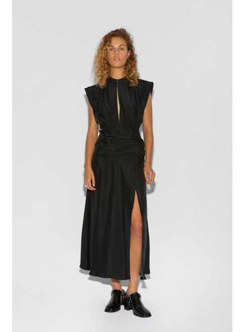 Roseanna satin dress in Charcoal.