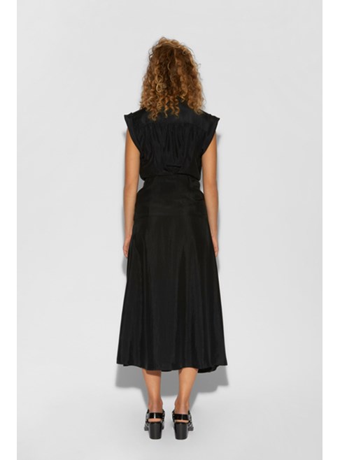 Satin is worked on its reverse side this season, to take full advantage of the material's intense matte side. Fluid and dressy, it adapts and subtly illuminates this model, all movement.