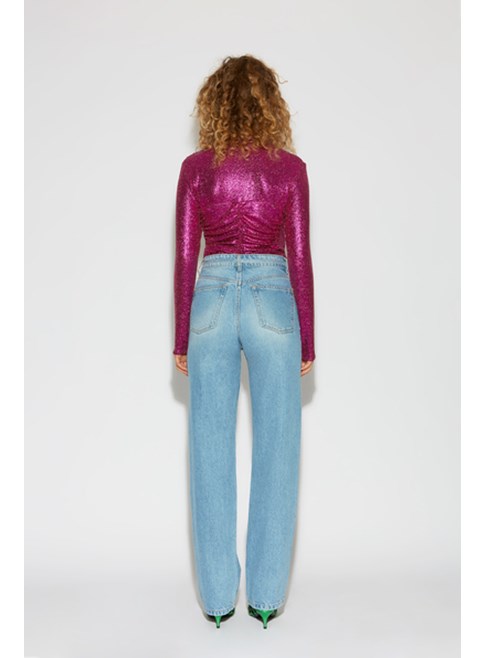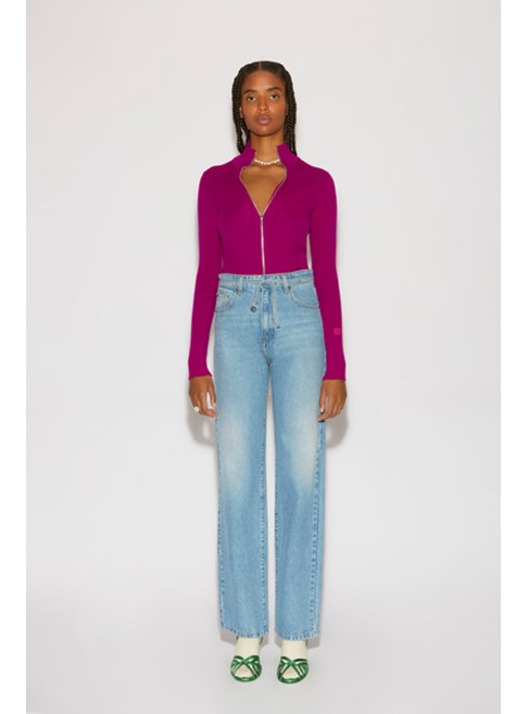 This season, our denim range welcomes the new Jane cut: high waisted, boyish cut and long legs, in a slightly washed colour. The slim denim belt detail is a distinctive feature of this model.