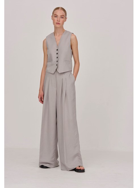 The Lotus Pants from Birgitte Herskind are mid-waisted relaxed-fitted pants with a deep front and back rise, straight legs, and pleats in the front. Wear it with our matching Mercy blazer or Mister Vest.