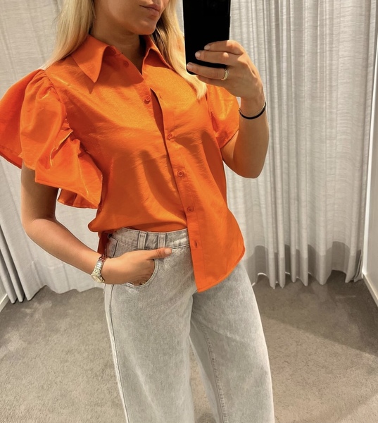 Shiny sleeve frill top