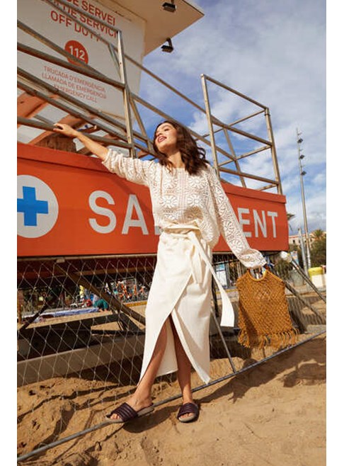 Our Rachel belted midi skirt from Studio Clique is classy, timeless and beautiful. This wrap skirt features a wide belt and a side front slit. Easy to combine with any t-shirt or blouse in our collection. If you feel like matching: combine with our Roxy top.