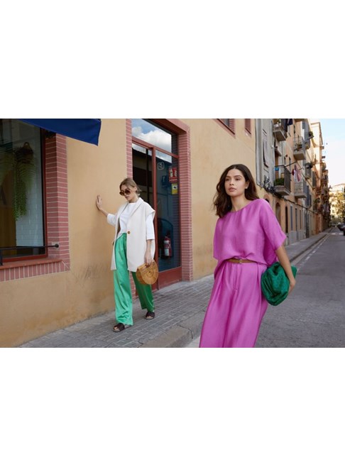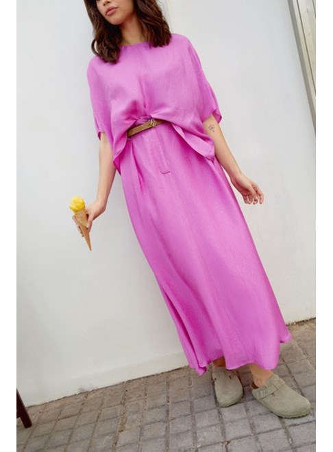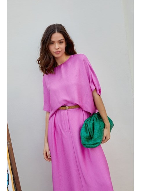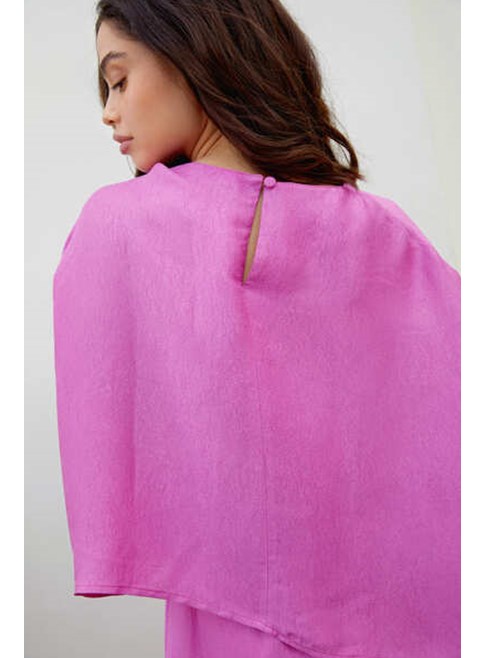 It doesn't get much easier than this cropped oversized blouse by Studio Clique. This hot pink throw-on is your go-to piece from office-to-dinner. Liv features short sleeves and a round neckline.