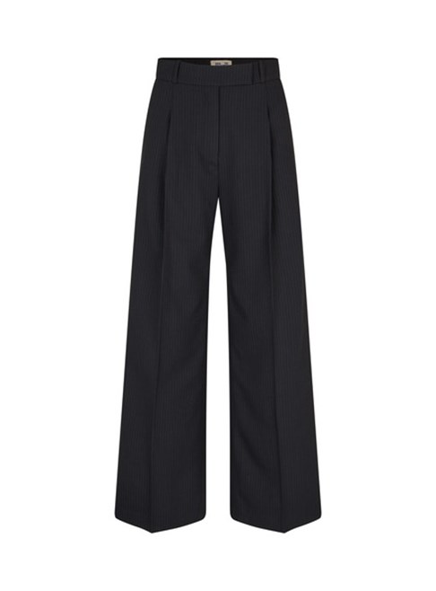 These high-rise trousers from Baum und Pferdgarten in blackish pinstripe feature a zip fly with hook closure and pleats on the front. The trousers are made from a blend of recycled polyester and Lenzing Ecovero viscose. Wide fit, featuring a high waist rise. Pair it with our matching Bleona blazer.