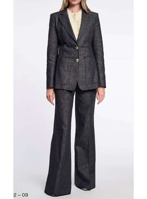 Tailored denim wide leg pants from Dorothee Schumacher. The tailored wide leg pants are made of cotton denim with a hint of stretch. The pants have side and back welt pockets and open seams. The pants can be worn as a suit with our matching Pure love blazer.