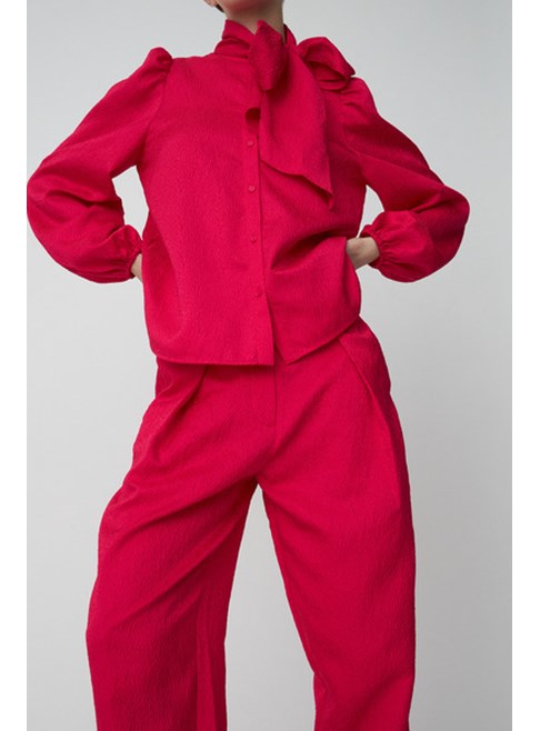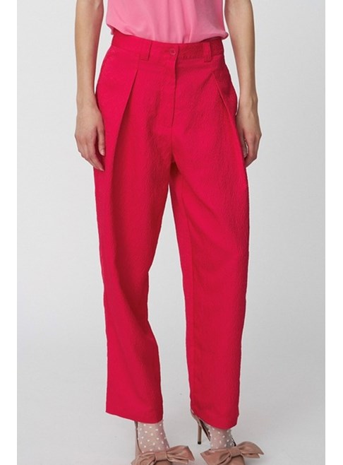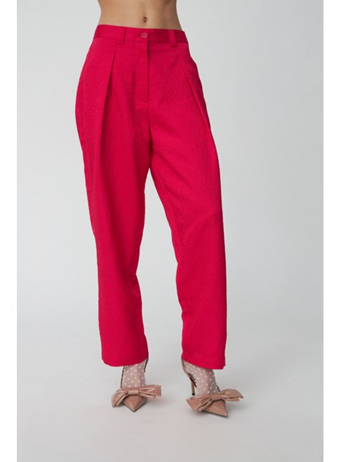 Cropped trousers from Stella Nova with a textured surface and a relaxed fit. They feature front pleats, side pockets, and back pockets, along with a button and zip closure. Combine with our matching Bow tie shirt.