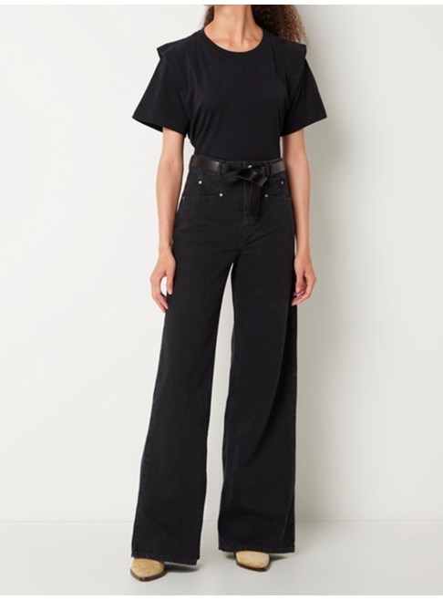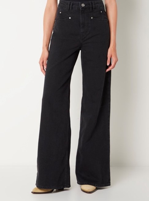 These are our iconic Lemony pants by Isabel Marant Etoile. Wide-leg, high waist denim trousers with belt loops, side slit pockets and back pockets. Closure: zipper fly, button fastening. Metal rivets, silver-finish metal details and flared cut.