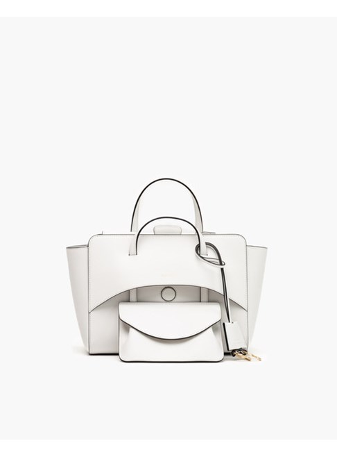 pouch nestled inside one of the handles that blends seamlessly into the structure of the bag.