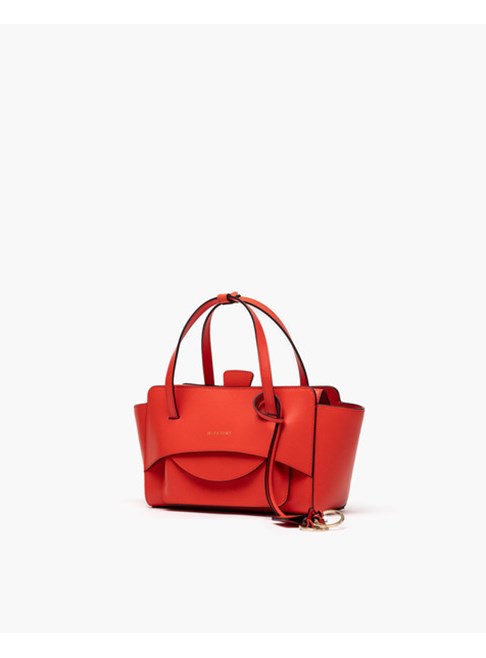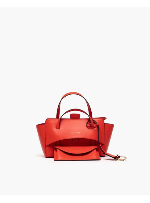 This is our Flap S bag by Hidesins. It's a red crossbody bag crafted in smooth calf leather. The bag has an adjustable and removable strap to wear it cross-body.