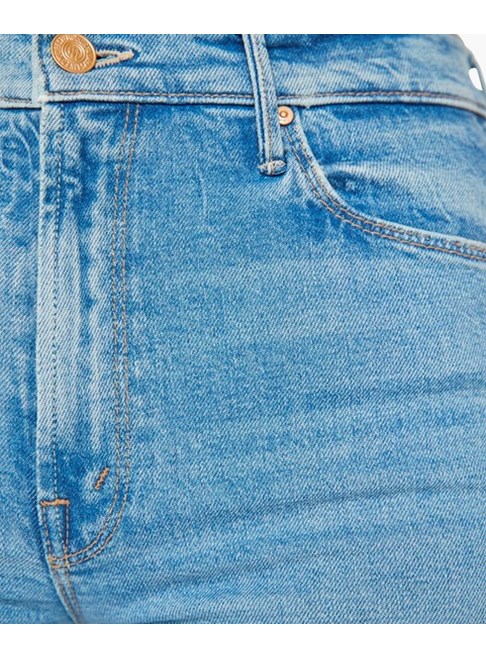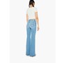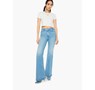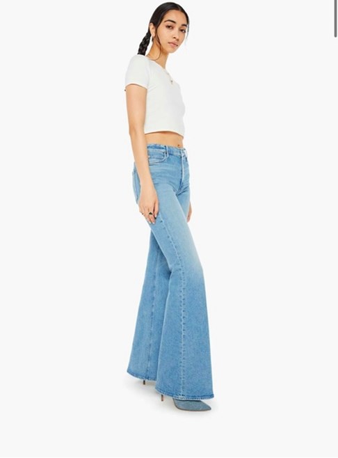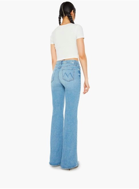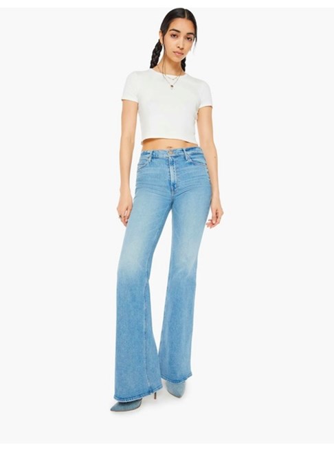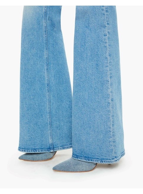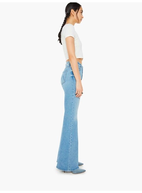 Playing the field. A high-rise flare denim trousers from MOTHER with a long 34-inch inseam and a clean hem. Cut from a blend of recycled stretch denim, Horseback To Quarterback is a light blue wash with whiskering and fading at the knee.