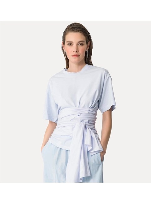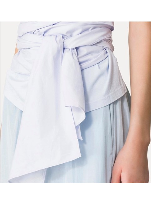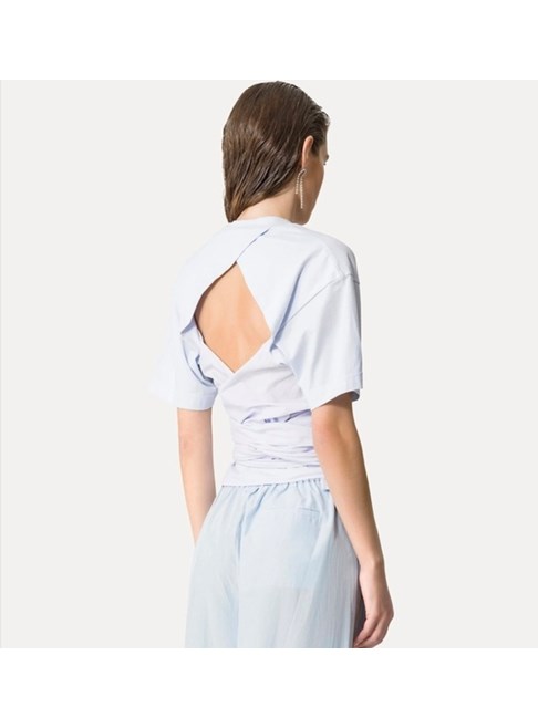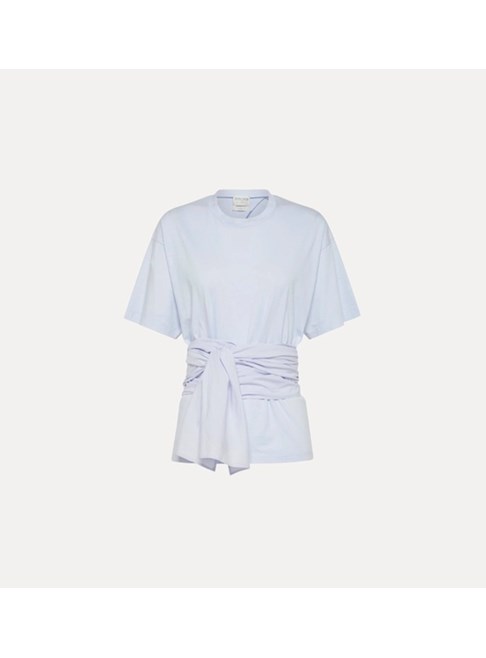 This is our jersey knotted t-shirt by forte_forte in nuage. The t-shirt features an open back. Combine with our matching trousers or your favorite denim / white pants.