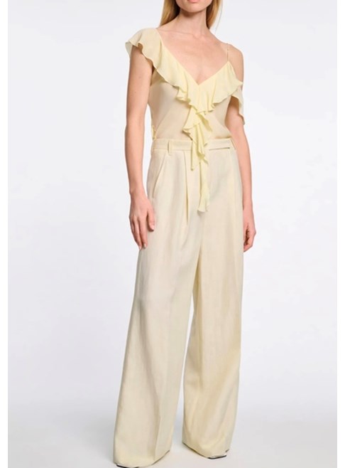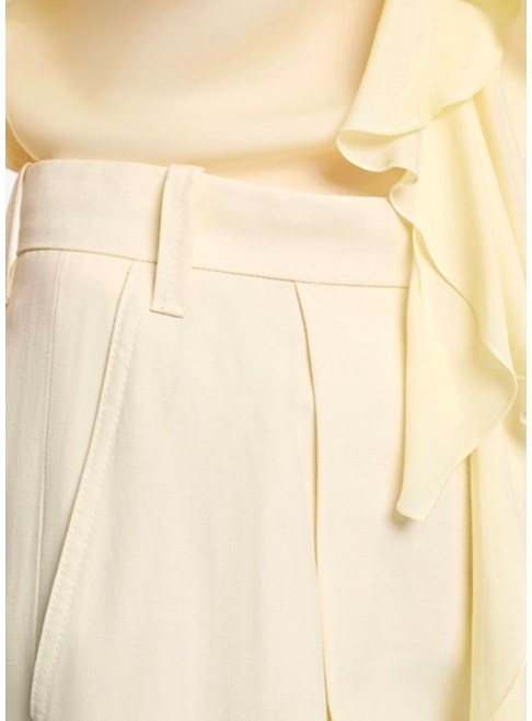 Made to mix and match. Introducing your new season suiting: The wide leg pants are made from technical linen and have pressed front pleating. The pants can be combined with our matching knits and tops.