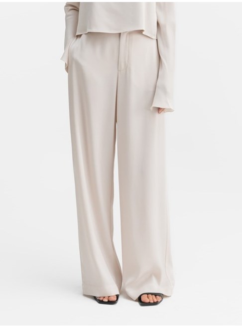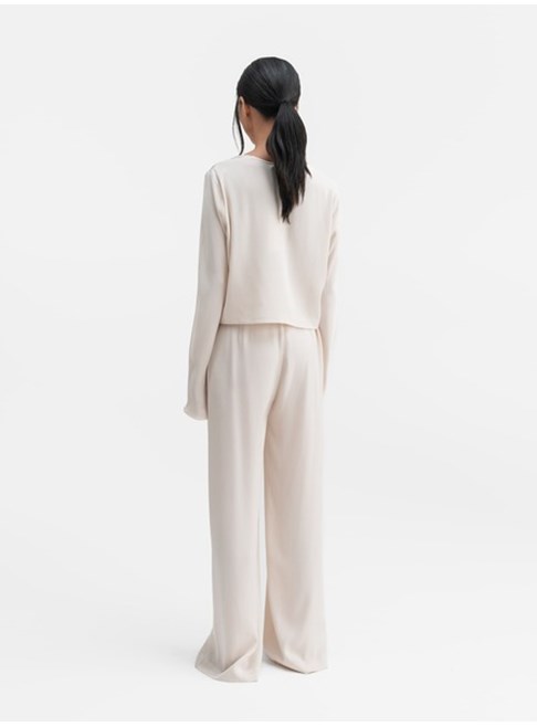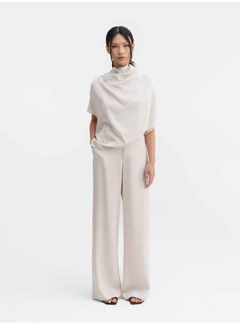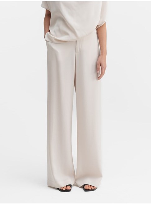Our Mila trousers by Ahlvar Gallery are cut from an acetate blend with a structured surface that sits high at the waist together with a straight and slightly relaxed leg. They feature pockets in the side seam, a fly, a hidden press button, and belt loops at the waist.