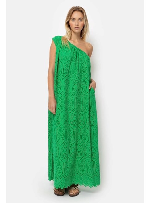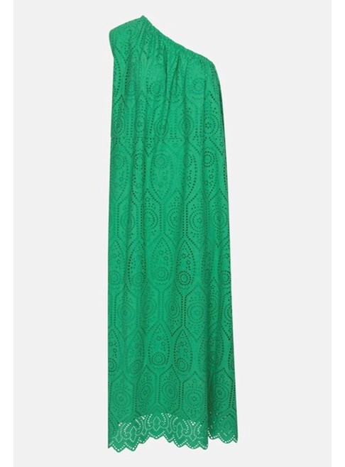 The Lourose One-Shoulder Dress by ame in Green Embroidered is a chic, statement-making piece. Its one-shoulder design adds a modern, asymmetrical touch. A standout addition to any wardrobe, offering a blend of elegance and contemporary style.