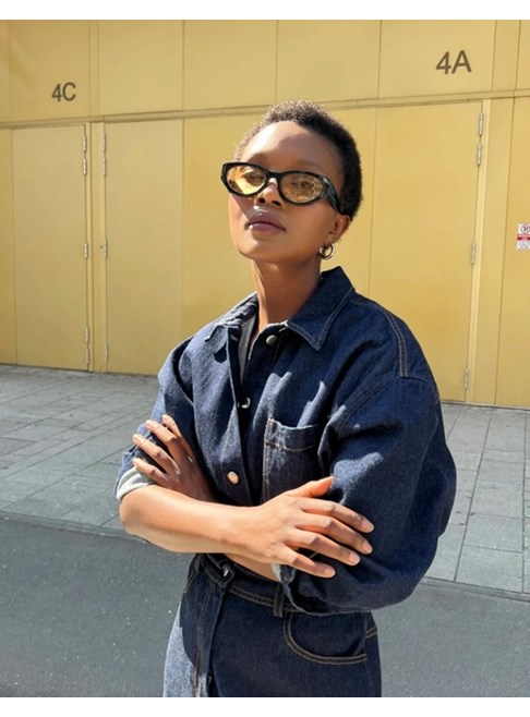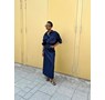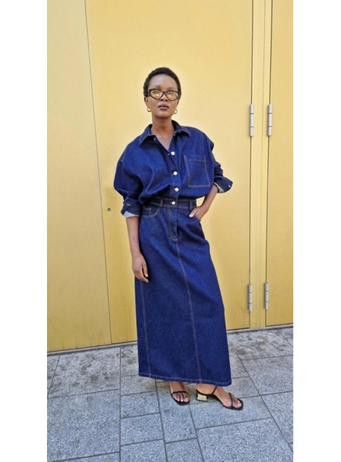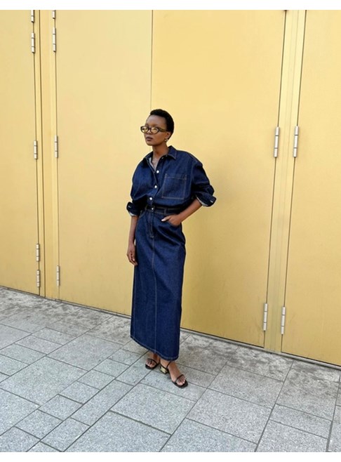 A contemporary total denim look with our DENJAMIN dress by Collectors Club. The maxi dress features an oversized upper blouse with gathers at the waist and a straight fit skirt with back slit. Available in indigo blue.