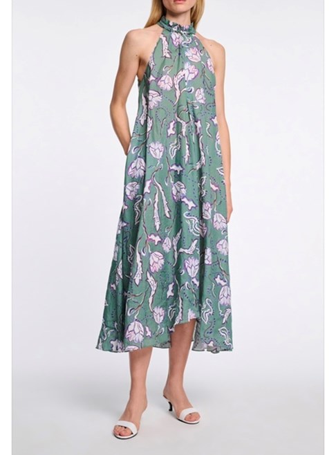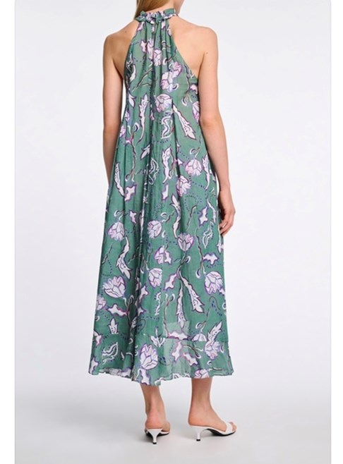 Relaxed fit maxi dress in printed ramie with crinkle effect