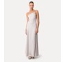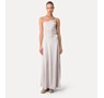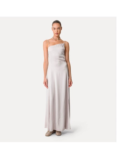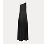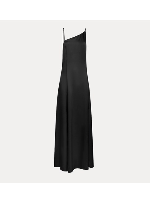 Satin dress by forte_forte loaded with contemporary charm featuring an asymmetrical cut at the neckline and a jaunty panelled design that can be turned into a one-shoulder style. the longline skirt flares out to the hemline and ushers in the summer season with its mother-of-pearl sheen and the fluid drape of the satin envers. perfect for evening ensembles, the satin dress was meant to be donned with nude-look sandals and flimsy bijoux made of feathers and beads.