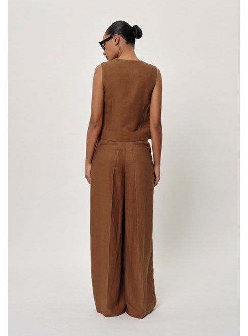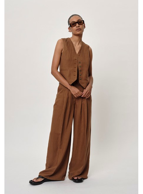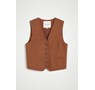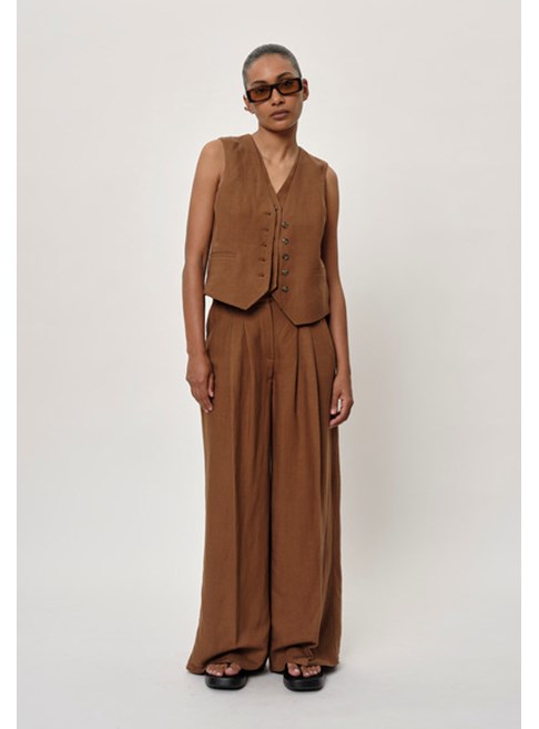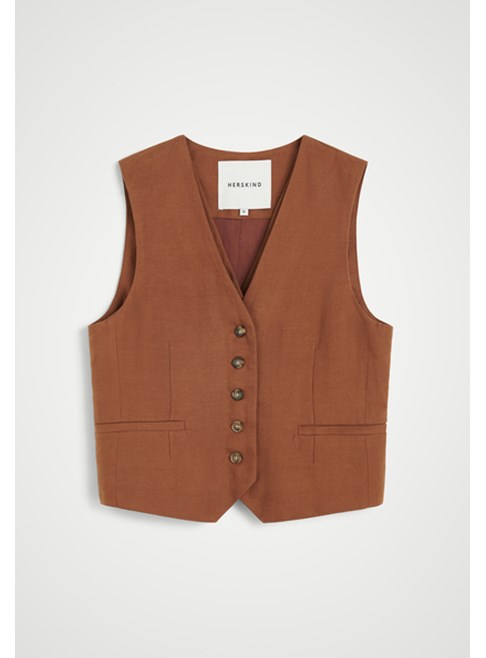 Introducing the Double up Vest by HERSKIND: A slim-fitted vest with side panels, two paspel pockets in the front, and a button closure design. This vest features a double front. Combine with our matching Lotus pants in toffee.