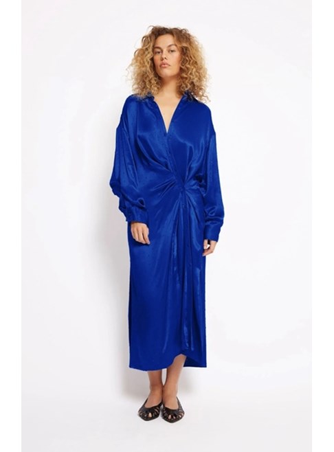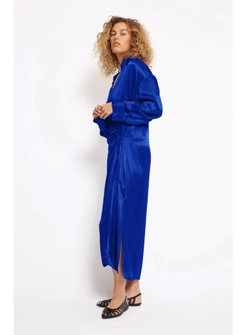Roseanna dress, JILLY model, straight twisted cut, in Royal Blue color.