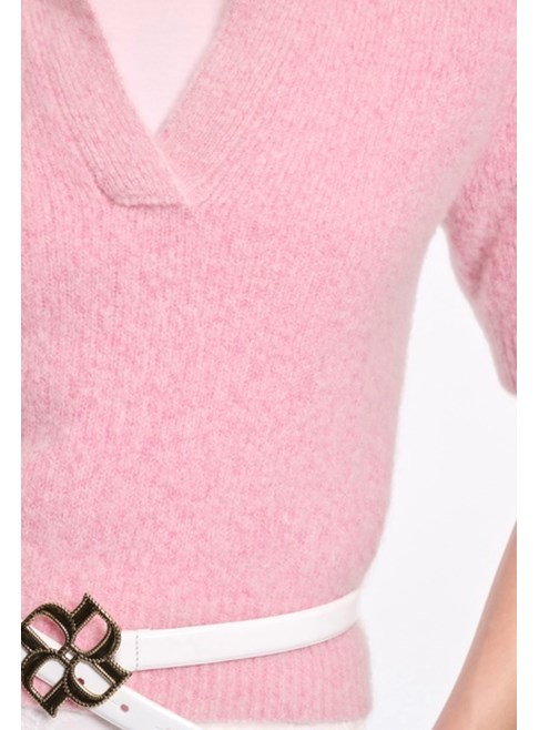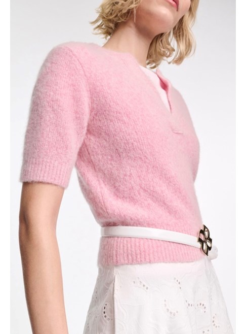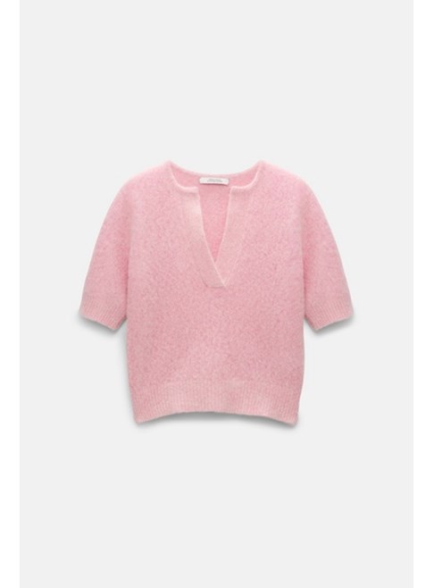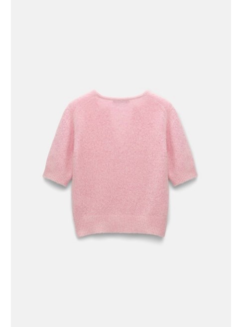 Extra soft cashmere crop sleeve sweater by Dorothee Schumacher in candy pink.