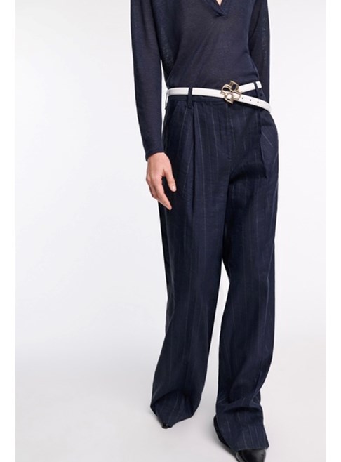 Wide pleated pinstripe pants