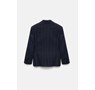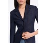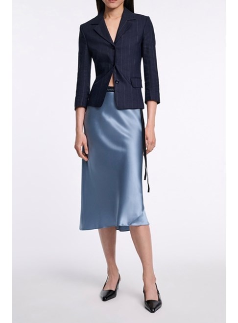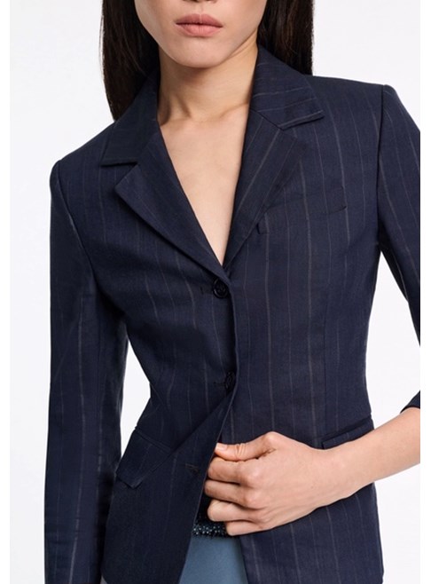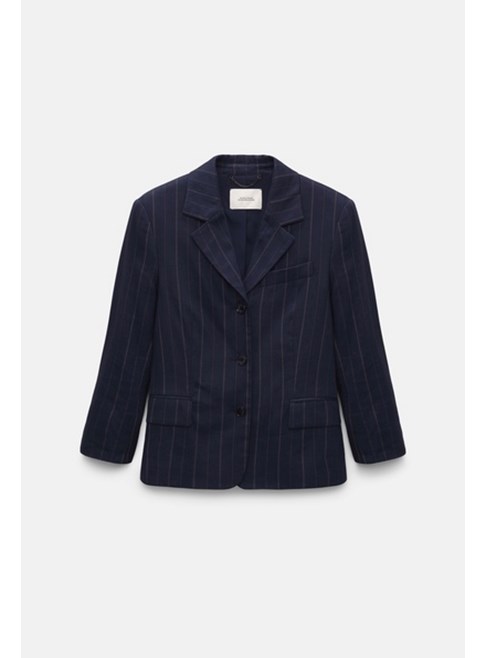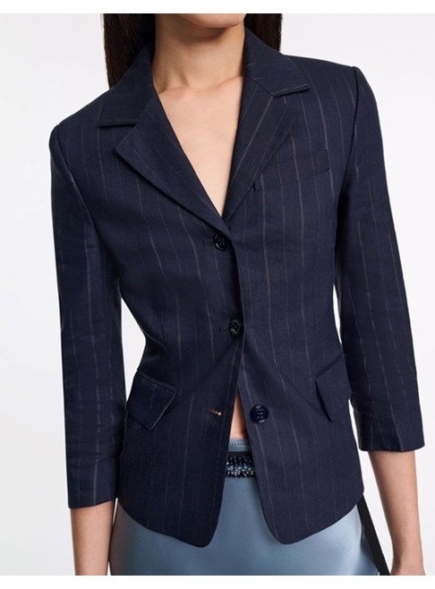 Cropped sleeve pinstripe blazer by Dorothee Schumacher in blue night.