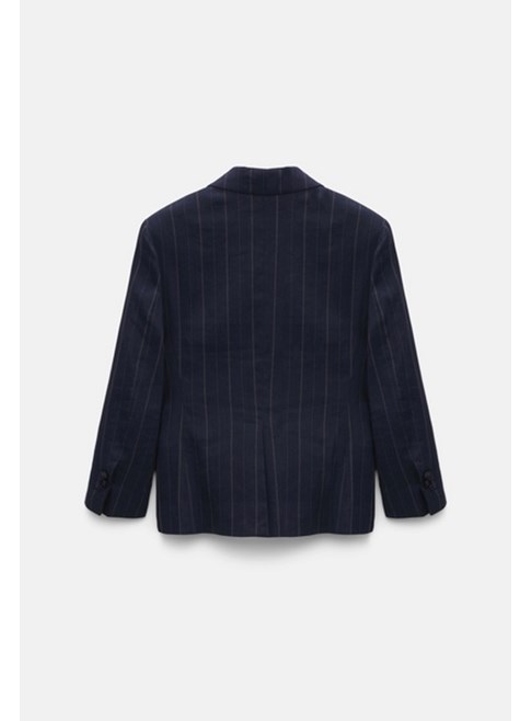 The new suiting is (pin)striped: Crafted in a linen blend, the pinstripe blazer features a slim silhouette and cropped sleeves. The tailored style can be worn as part of a suit with the matching shell and pants.