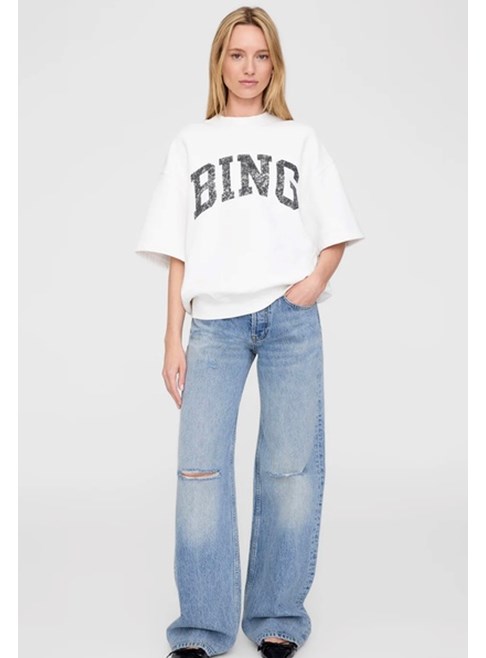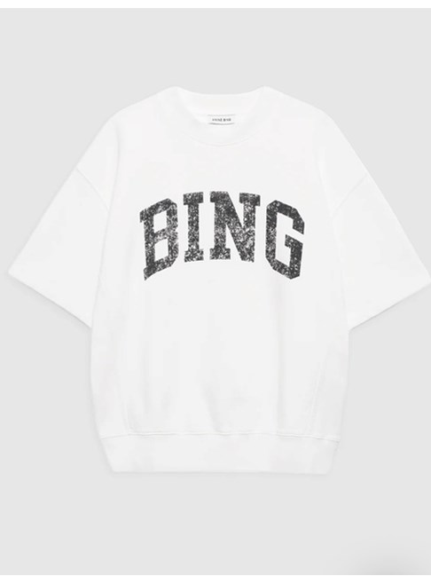 The Jay Sweatshirt Bing by Anine Bing is a short-sleeve crewneck pullover made from midweight 100% cotton French terry in off white.