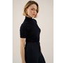 This is our Cerine top by Oscar in midnight blue. It's a classic top with high neck and short sleeves.