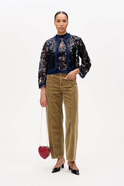 The Bethina Jacket by Baum und Pferdgarten is a cropped sequins jacket that adds some glamour to your wardrobe. The sheer jacket has many unique details such as sequins detailing, hook closure and frayed hems, which add a hint of edge to the chic silhouette. Perfect for layering, the jacket is a bold yet versatile piece for special occasions and elevated everyday looks.