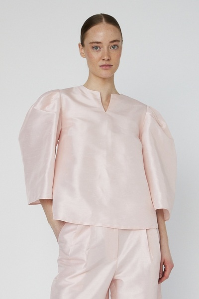 Blouse with large 3/4-length sleeves by Stella Nova. The blouse has a V-neck slit and is in a crispy material. Combine with our matching pale pink pants.