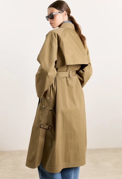 Christel is cut from a cotton-nylon blend fabric. Designed with a relaxed silhouette and dropped shoulders, it brings ease to the traditional structure. Classic trench details, like the storm flap, back vent, and double-button side tabs, are present but softened with updates. The waist belt allows for adjustable cinching, while side seam pockets add functionality. Finished with horn-effect buttons and clean topstitching.