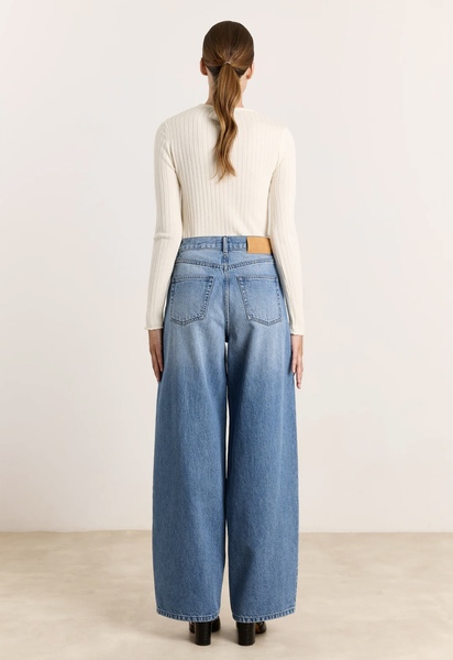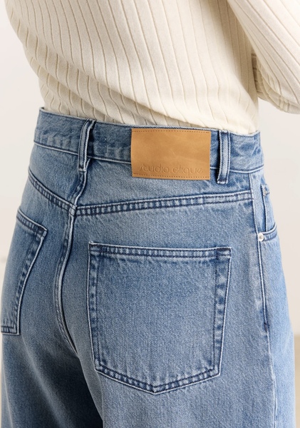 Heidi is a wide-barrel jeans crafted from structured mid-weight cotton denim with a high-rise fit. Designed with classic five-pocket styling, a zip fly with button closure, and full-length legs. Finished with tonal stitching and a natural leather patch on the back waistband.