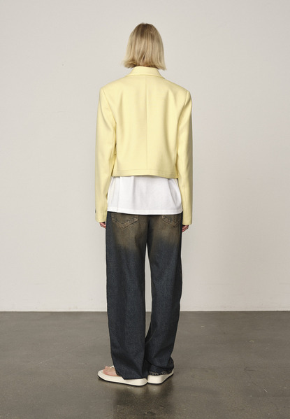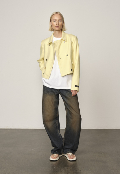 This is our Elo fitted blazer by HERSKIND. A modern approach to tailoring with a clean, structured and cropped silhouette. Designed with a double-breasted front and flap pockets for a refined yet effortless look. Pairs easily with denim or sharp trousers.