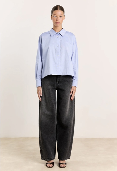 Florence is cut from a 100% cotton fabric. It is a classic shirt style with a slightly cropped length which makes it easy to wear on a daily basis. An essential for each closet. Available in mid blue.