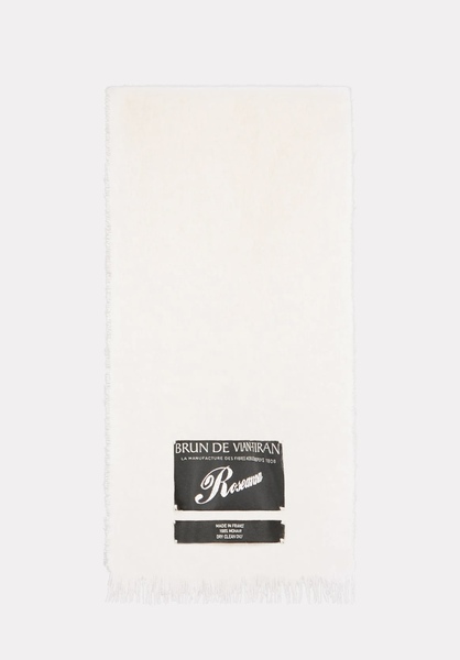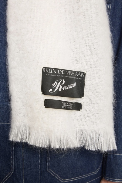 Made from mohair, this scarf is embellished with fringes at the ends and a "Roseanna x Brun de Vian Tiran" label embroidered in silver lurex thread.
