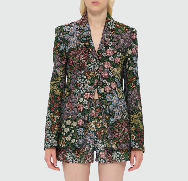 Single-breasted blazer from MSGM. Structured shoulders and front pleats accentuate the silhouette. Logo on the back. Wear this statement piece with your favorite denim trousers for a cool look or with our matching shorts.