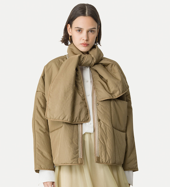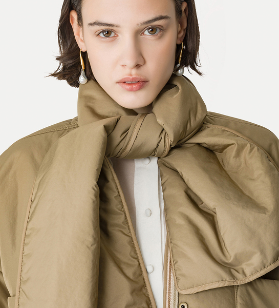 soft as a spring sea breeze, the winter kimono by forte_forte creates a refined balance between boxy volumes and delicate padding. trimmed with contrasting piping for an elegant touch, it fastens at the neck with a removable padded scarf.